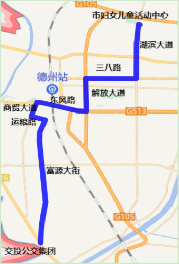 運(yùn)營路線:市婦女兒童活動中心、湖濱大道、三八路、解放大道、東風(fēng)路、商貿(mào)大道、運(yùn)糧路、富源大街、交投公交集團(tuán),返程亦同;